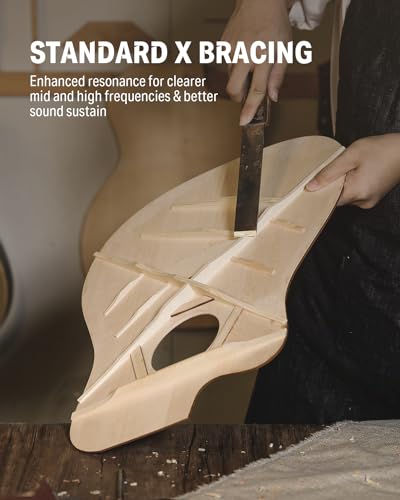 - 🔶[Well Made Craftsmanship] Boasts a spruce top complemented by a mahogany back and sides, all reinforced with X bracing for durability and sound quality. The fretboard features 20 brass frets with clear position markers on the 3rd, 5th, 7th, 9th, 12th, 15th, and 17th frets for ease of play, designed to withstand years of practice and performance.
