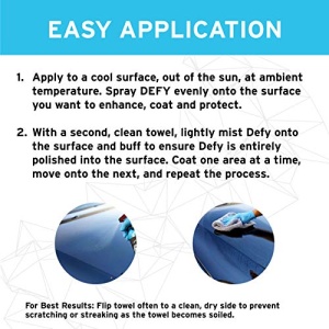 - PATENTED INSTA-BOND TECHNOLOGY – Utilizing our proprietary Insta-Bond polymers Defy ceramic wax Instantly leaves behind a slick, non-stick finish that repels Water, Dirt, Dust, Grime and Contaminants. This slick finish leaves a smooth, glossy finish behind making future cleaning and protection a breeze.