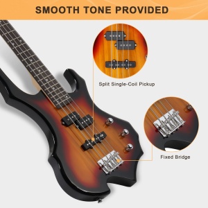 • ♫【BURING FLAME SHAPED】- This electric bass guitar has an attractive flame shape looks like buring fire made of solid basswood. The fretboard material is rosewood, and neck is made of maple, these can ensure your tone stability and smooth.