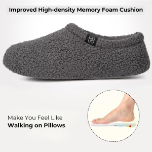 - MEMORY FOAM FOOTBED fits the contour of your feet and make you feel like walking on the soft pillows. Cuddle your feet in the coziness after bath, during travel or a busy office day. Extra shock absorption EVA foam enhances stability for your each step