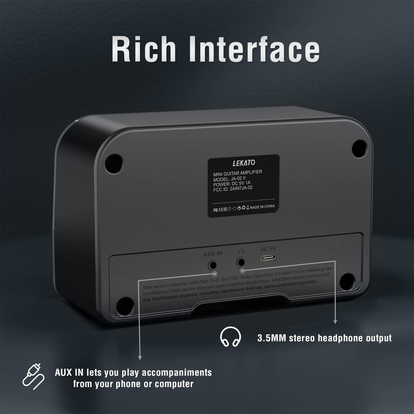 - 🎸【Portable&Convenient】Small body but with great energy, LEKATO 5W Guitar Amp features the independent knobs for the volume of AUX IN/Bluetooth and input volume. Mini cute size, can be put in the bag anytime, anywhere.